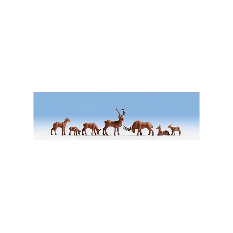 Ciervos 15730 NOCH Escala H0. Se incluyen todas las figuras + todos los accesorios y complementos que aparecen en la imagen. Figuras pintadas a mano. Se presentan en una cajita de plastico duro muy bien protegidas