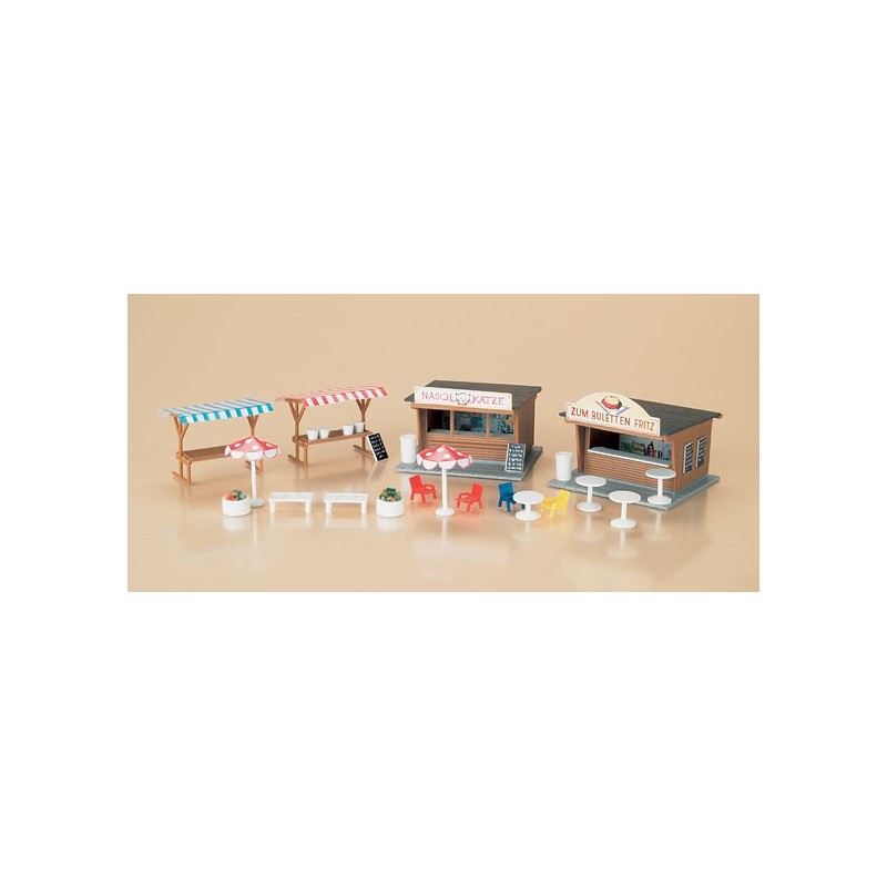 Mercado y bar ambulante con accesorios 11352 Auhagen Escala H0. Se incluye todo lo que se muestra en la imagen