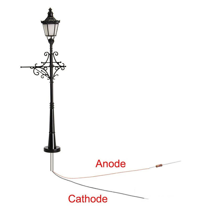 - Se recomienda poner la resistencia en el cable rojo (anodo +) de la farola. La resistencia puede ser soldada o enrollada al cable de la farola. Debe quedar como en la imagen de abajo (modelo de ejemplo):