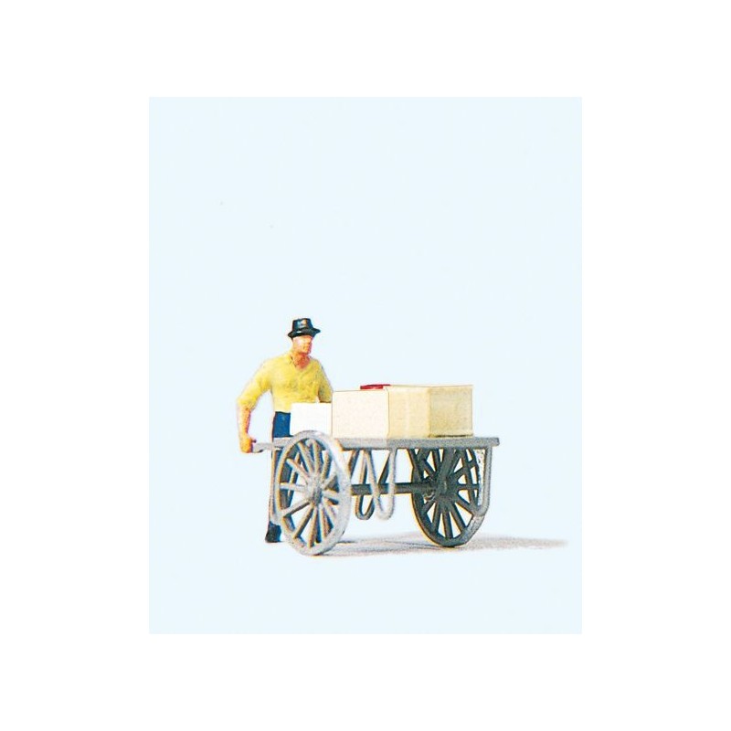 Trabajador con carrito y mercancia 28036 PREISER Escala H0