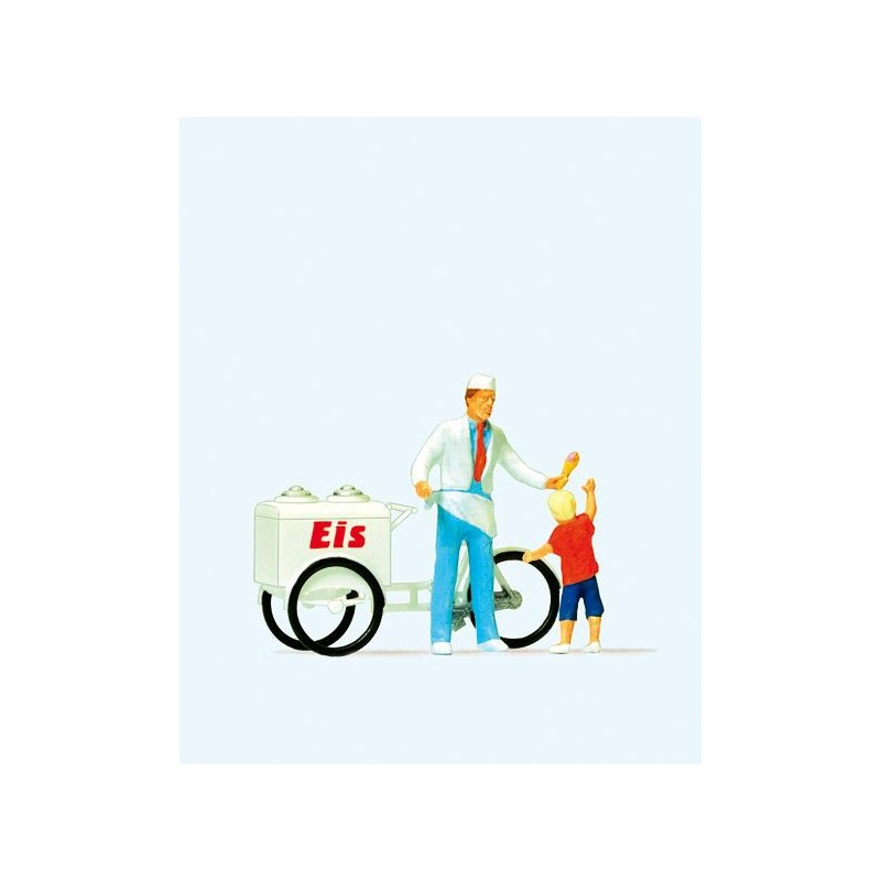 Vendedor de helados con carrito y un niño 28126 PREISER Escala H0