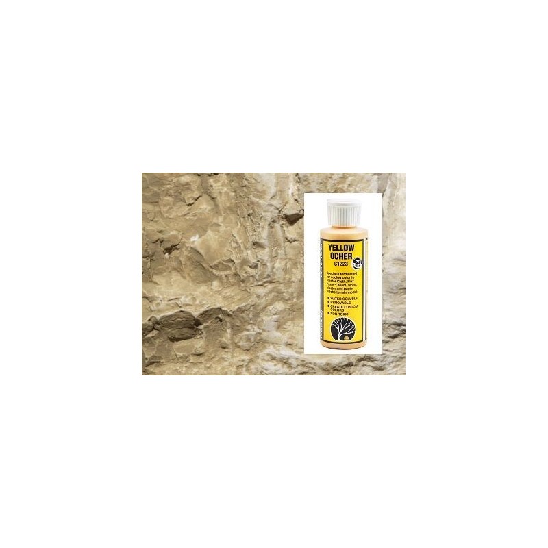 Liquido pigmento de color amarillo ocre, especial para colorear y dar color a montañas, rocas, piedras, bocas de tunel, alcantarillas, etc...