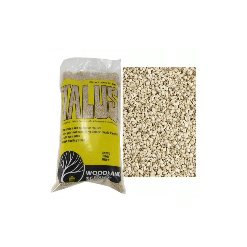 Piedra fina TALUS color beige C1270 Woodland Scenic. Piedra natural ligera , cribada y seleccionada para trabajos de escenografia y modelismo a escala .en formato de bolsa de 409 cm3.